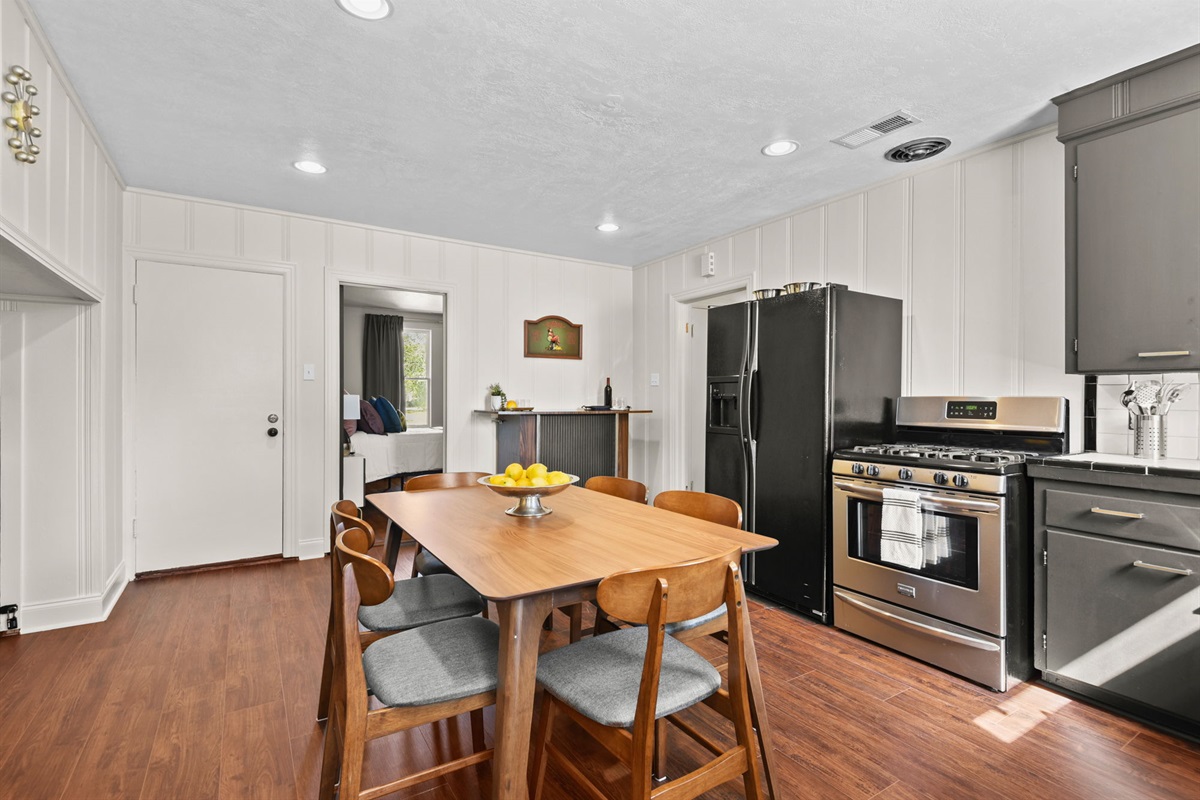 This one-of-a-kind home is just minutes from LSU, and some of the best local restaurants, cafes and happy hour spots in Baton Rouge. However, on days when you want to stay in and cook at home, this fully furnished kitchen gives you the appliances and enough space to do it comfortably.