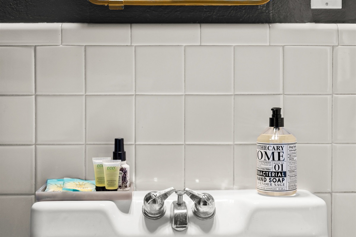 This stylish home has a new full bathroom with high pressure rain shower heads, mirrored vanity, hidden & hanging storage, and stunning finishes. Spend all day exploring Baton Rouge, and then come home and enjoy a long, hot shower or tub before settling in for the night. The water pressure is excellent with soft water, towels are hotel-quality, furnished with bathroom basics (like shampoo, conditioner, hand soaps, make-up towels).