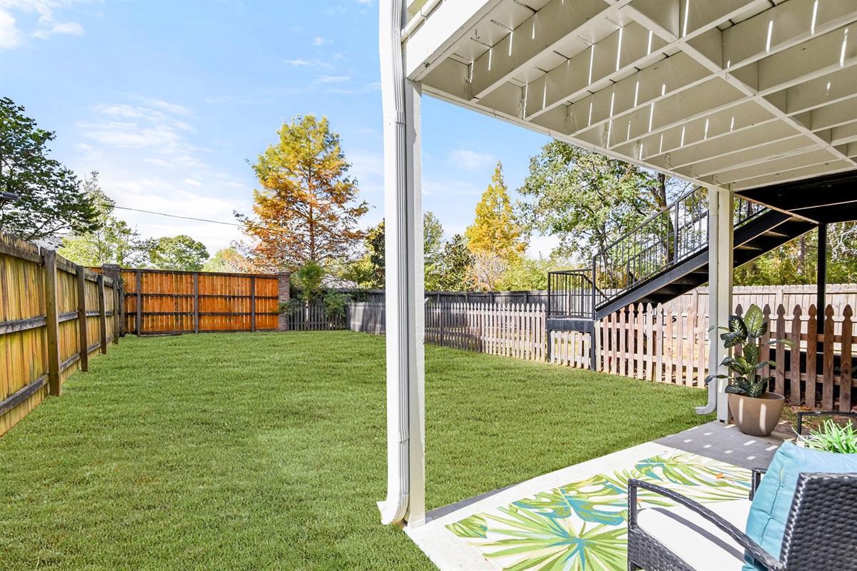 Your rental has access all of the outdoor spaces. Including the downstairs private patio and also the balcony upstairs with a magnificent swinging chair. A fully fenced in yard for your pets to run around and play.