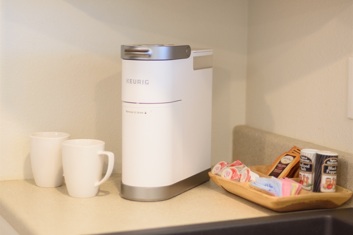 Start your morning by brewing coffee in the coffee maker and using the toaster and blender to make a quick breakfast. Order takeout, enjoy it on the dining room table, and use the microwave to reheat leftovers for a midnight snack.