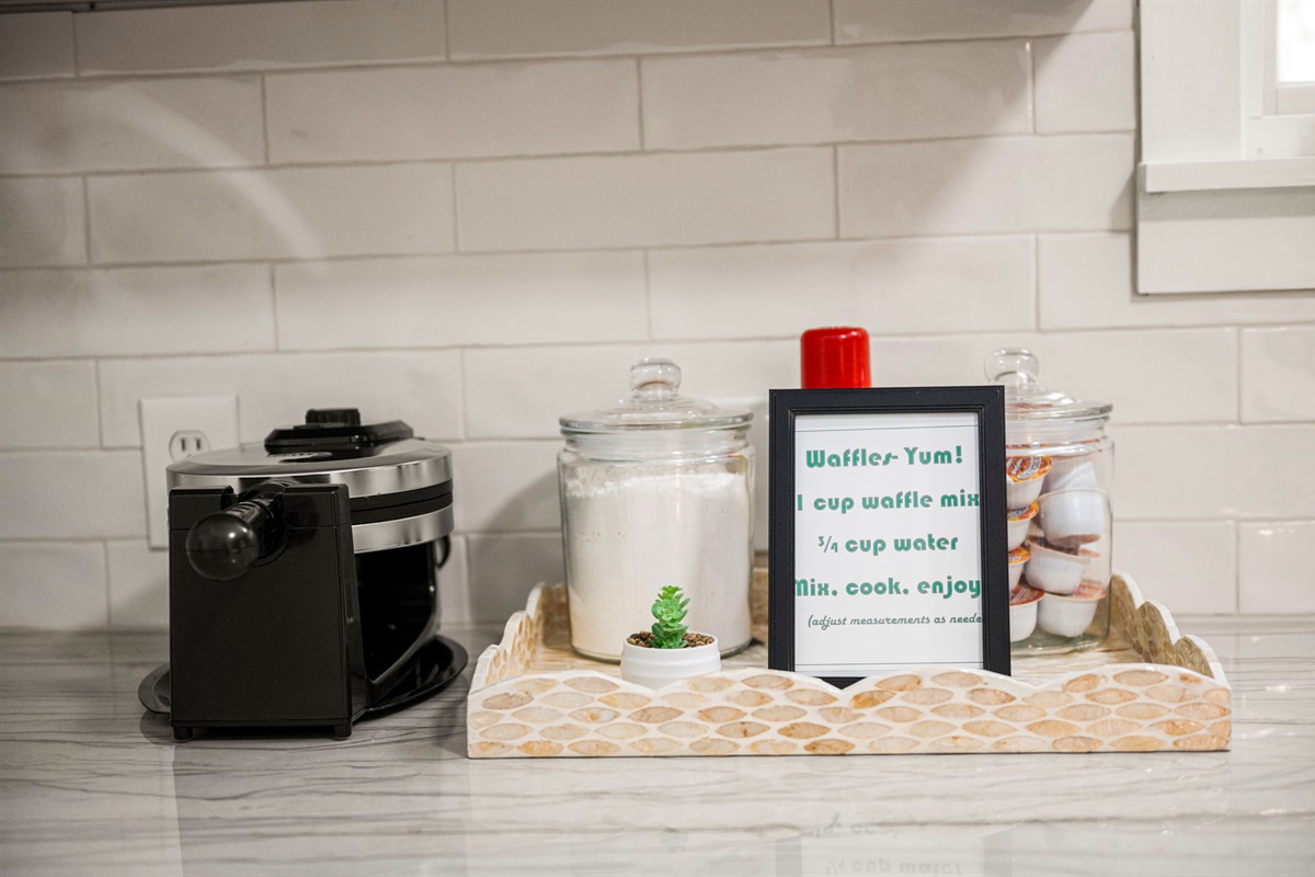 “Place was great for a gameday weekend at LSU for a big group. Backyard was awesome with a TV and great deck furniture. Waffle maker with all the supplies was a nice touch. Check-In and Check-Out didn't provide any flexibility was the only complaint as it was a bit later at 4pm and early check out of 10am. Otherwise, great stay and would definitely stay again.”–Mitch