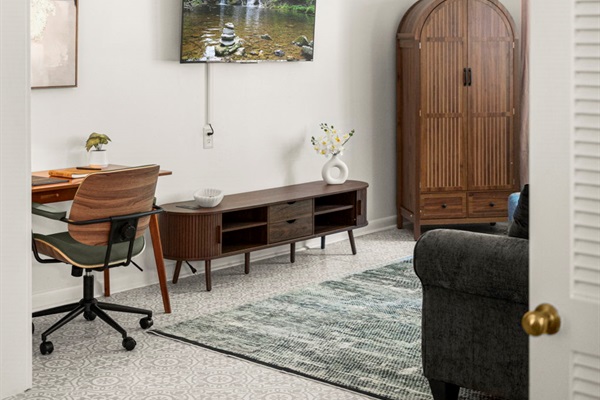 ✹ Living Room 1: Comfortable sofa, armchair, 65” smart TV + dedicated workspace