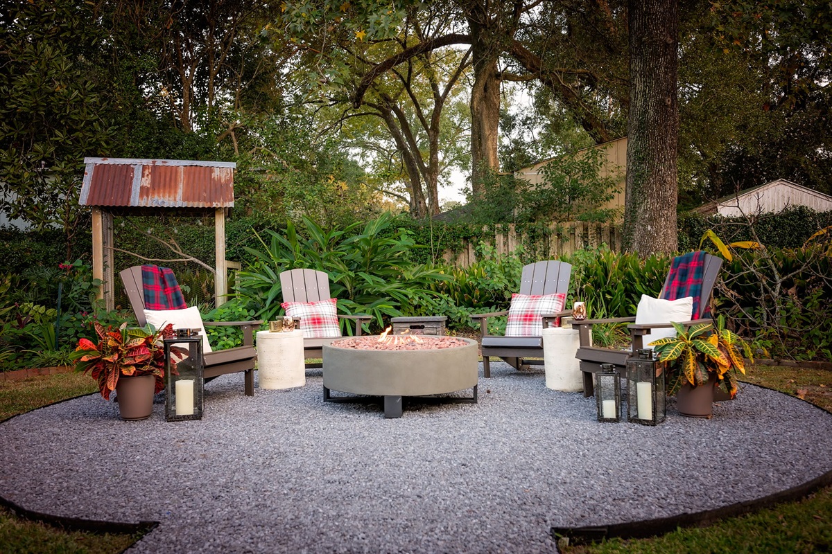 ✔ Fire pit w/ 4 chairs + cozy blankets
