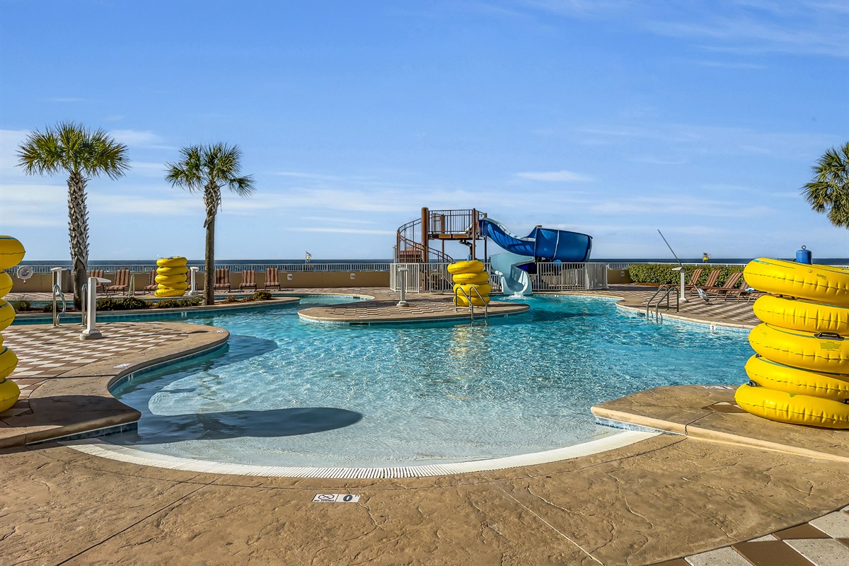 "My daughter and I recently went to the beach for a last minute getaway with her two small children (3 and 1). This location was absolutely perfect. Lower floor allowed us to walk out the front door and around the side of the building to the pool and beach area. Also easy loading and unloading. Splash pad was a big hit! We decided to add another day and the communication was very easy. Laundry on site was a plus as well. Will be going back again!!" - Christina