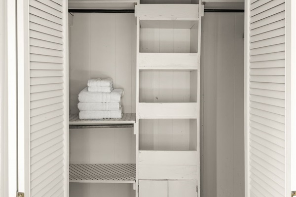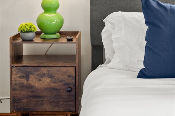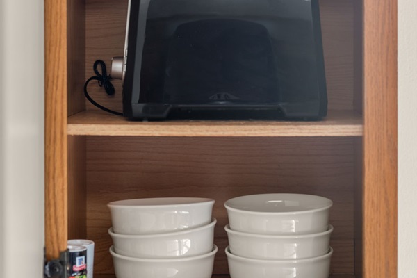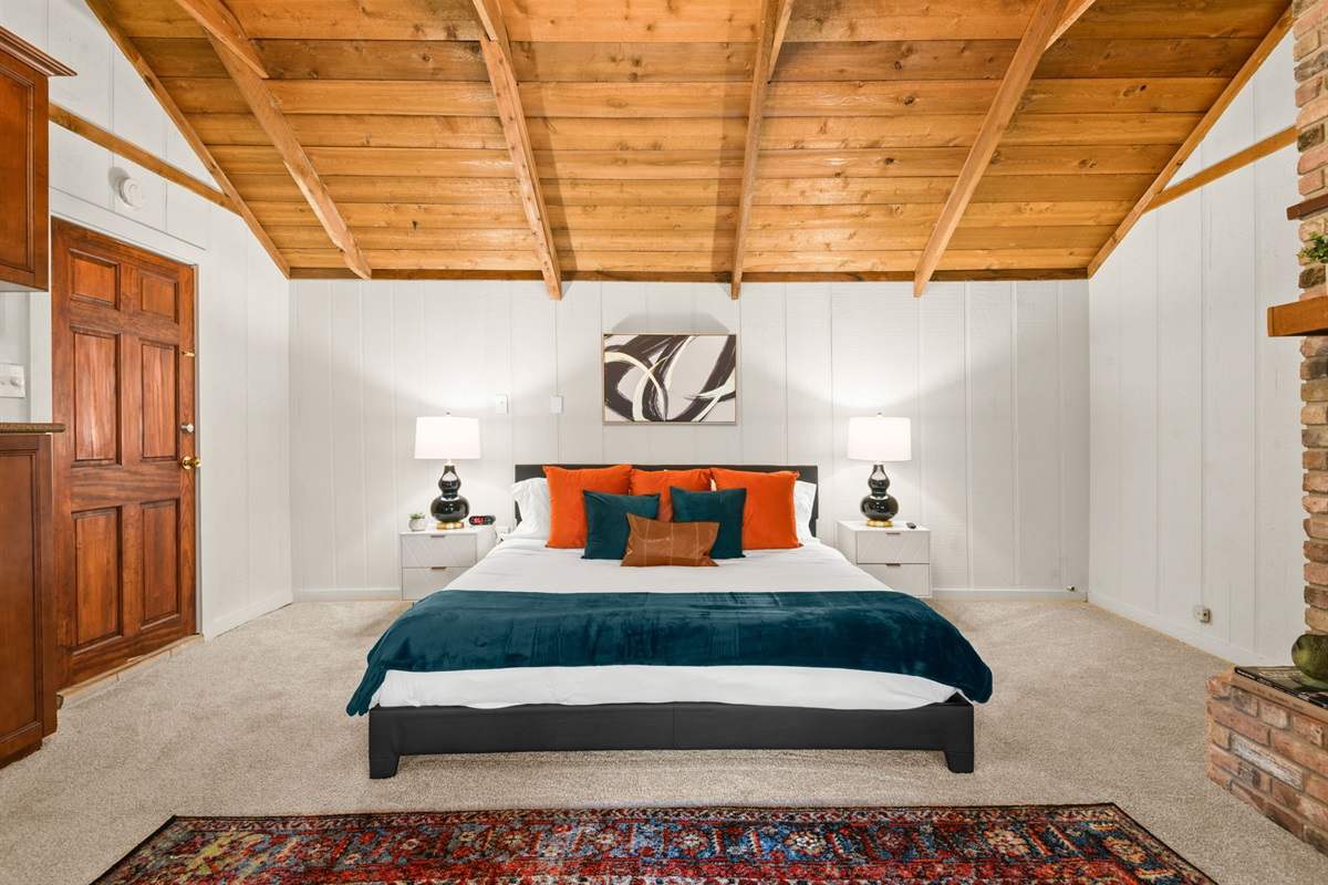 The Town Centre Cabin offers two dedicated working areas for those who need a dedicated environment. The large main office is located just off the living room with well lit space and large desk to spread out your virtual office items. Wooden bi-fold doors separate the office from the living and kitchen areas. The second work space is in the large primary bedroom nestled between the fireplace and back patio access for a cozy feel with outdoor views and privacy. A third working traveler could even open up shop on the dining room table for an extra-large desk!