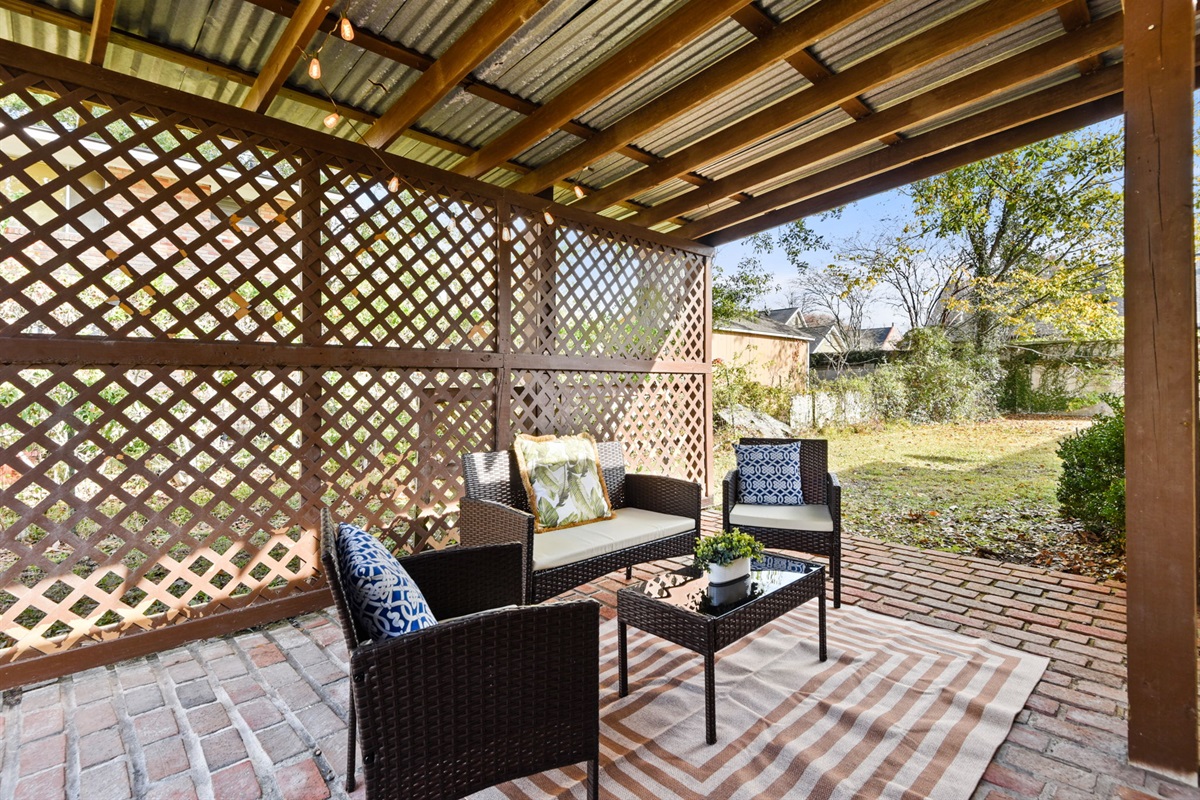Nestled in the heart of Baton Rouge, this professionally redesigned and lovely home on Lasalle Avenue offers a comfortable living experience boasting three meticulously crafted bedrooms with King mattresses. The primary bedroom offers the feeling of a cozy cabin adorned with vaulted ceilings, solid wood beams and fireplace. The large ensuite primary bathroom is attached. Primary bedroom guests have private access to the covered back patio to enjoy beautify weather, while draped café lights offer a relaxing ambiance. The 3 guest bedrooms across the home are all adorned with tasteful decor and ample natural light, separated by a full bathroom. The thoughtfully designed spaces create a harmonious atmosphere, providing an ideal retreat for relaxation.