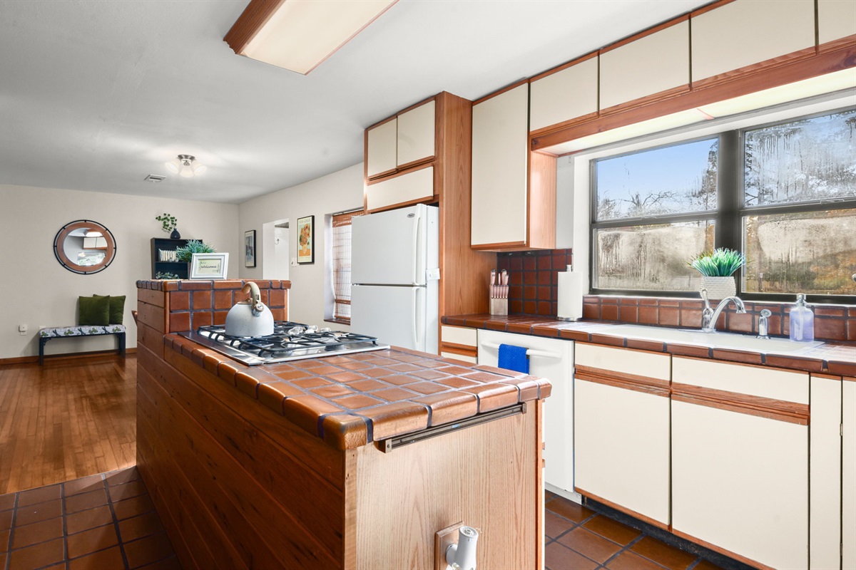 Step into the heart of this professionally redesigned and open concept living and kitchen area that is bathed in natural light. Cook your favorite dishes on the stainless gas stove and enjoy in the spacious dining area. The living room area seamlessly flows from the dining and kitchen spaces, creating an inviting space for entertaining or unwinding with loved ones.